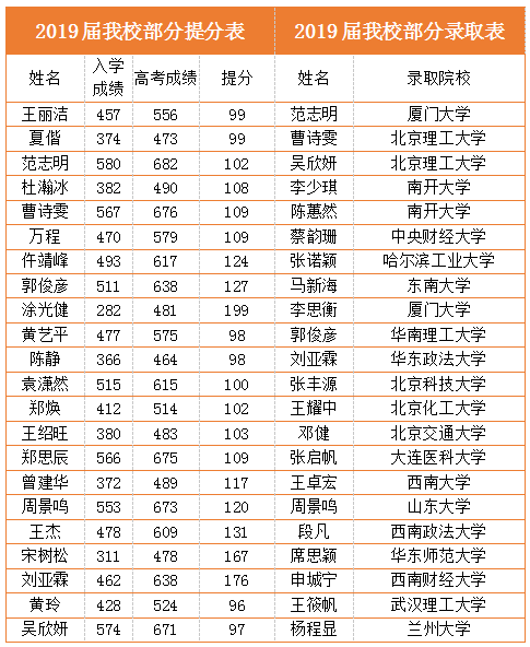 2019年高考成绩:10.5%上600分,23.3%上一本,93.4%上二本,10O%本科上线率,理科较高分668,位列全省589名。