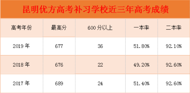 昆明优方高考补习学校是经教育主管部门审批成立,专门针对应届高三及高考复读学生而开设的全日制高考补习学校。自2005年建校办学以来,一直专注于高考补习。目前在校学生700余人,教职工100余人,其中研究生以上学历教师占三分之二。办学12年来,学校已向全国输送大学生3000余人,其中北京大学、清华大学7人,“985工程”“211工程”重点大学513人。优秀的顶尖名师团队、高效独特的教学方法、科学严谨的校园管理、规范严明的校规校纪、高度负责的全职教师、稳定的教学质量、优异的高考成绩,受到广大学生及家长的认可和赞誉。优方立志于做云南省教学质量较好的全日制高考补习学校。